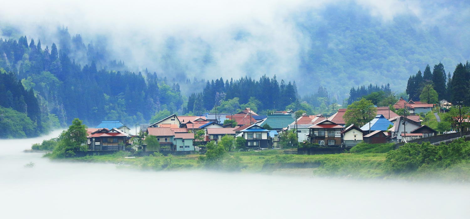 只見川沿いにある大志集落と只見線をとらえることのできる「かねやまふれあい広場」は、只見線の撮影地としても人気のスポットです。また、会津川口駅から2キロほどの尻吹峠を下ったビューポイントからは、「大志俯瞰」と呼ばれる壮大な風景を見渡すことができます。霧の漂う幻想的な朝、白く輝く山々を背景にした白銀の集落と只見川、色鮮やかな集落の屋根と紅葉など、一度は訪れてみたい超絶景ポイントです。