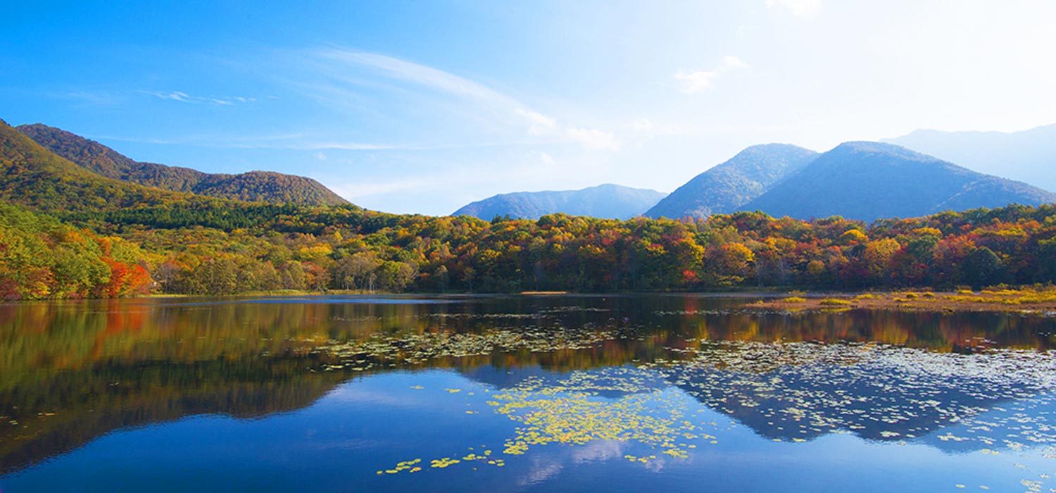 立ち枯れの木やいくつもの浮島、鏡面となって木々や山や空を映し出す水面など、フォトジェニックな要素が揃った公園です。広い駐車場があり、園内や観音沼への遊歩道もよく整備されているため、軽装で気軽に訪れることができます。特に紅葉の美しさは格別で、多くのカメラマンや観光客で賑わいます。