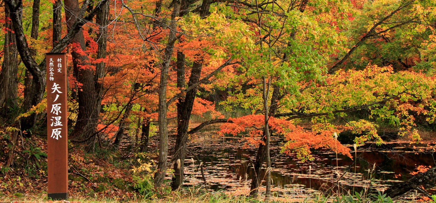 春はミズバショウやミツガシワ、夏はヒツジグサ、秋は美しい紅葉などが見られる矢ノ原湿原は約280種類の植物が群生し、福島県自然環境保全地域、村の天然記念物にも指定されています。アクセスの良さと歩きやすい一周約40分の遊歩道で、トレッキング初心者にもおすすめです。珍しい野鳥や稀少なハッチョウトンボ、絶滅危惧種のマダラマニワトンボなどにも出会えるかも。不思議な形や色の植物などを探すのも楽しそうです。湿原を渡る木道や湧き水など、気軽に散策を満喫できます。